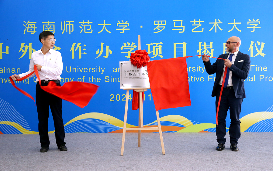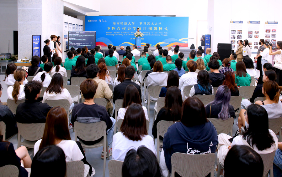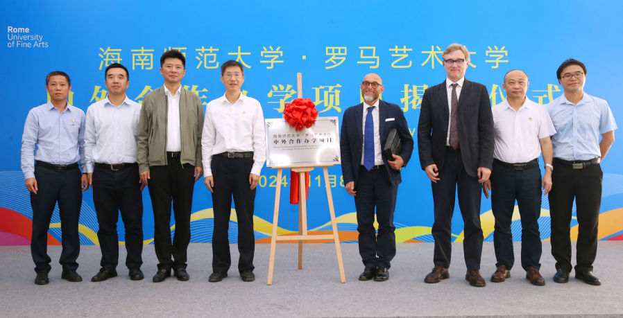 11月8日,星空游戏官方与意大利罗马艺术大学合作办学的环境设计专业本科教育项目在海师美术学院举行揭牌仪式。罗马艺术大学校长FABIO MONGELLI(法比奥·蒙盖里)、国际处主任ANDREA TOSI(安德烈·托西 ),星空游戏官方校长陈相松,校党委常委、副校长、美术学院院长张引出席,教务处、国际合作与交流处,美术学院师生代表参加活动。