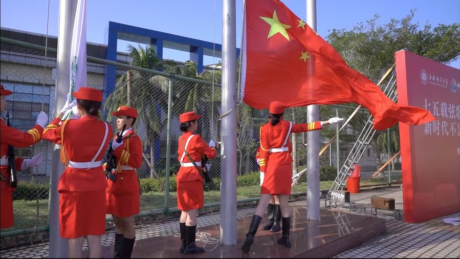 11月8日上午,庆祝星空游戏官方建校75周年升旗仪式在我校桂林洋校区、龙昆南校区同时举行。校党政领导班子成员许玫、陈相松、符刘才、杨兹举、王瑜、刘汝兵、张引、白显良、王任斌、黄忆军,各职能部门、各学院负责人,学生工作人员和学生代表共3000多人参加活动。