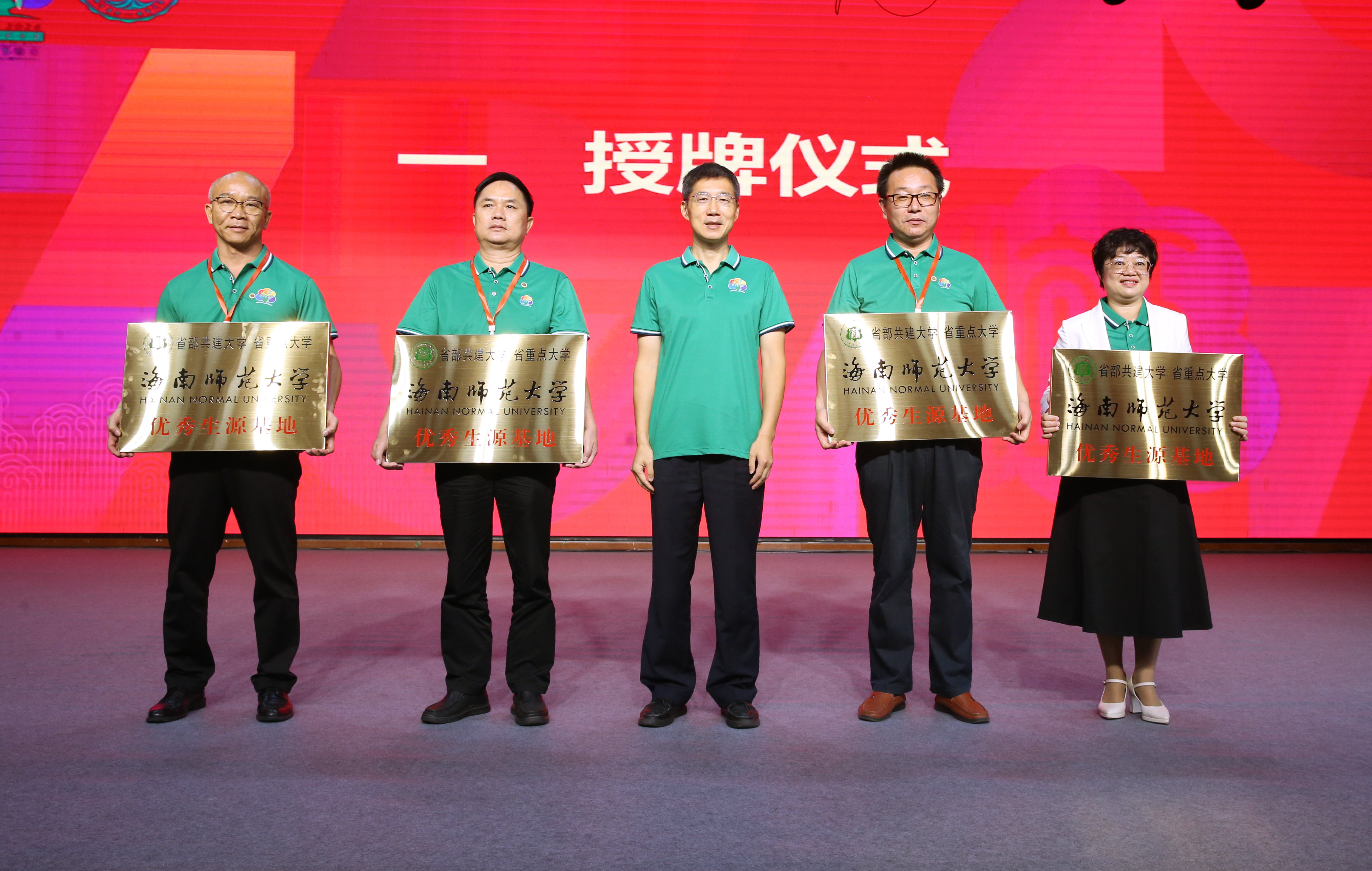 换届大会后,参加活动的全体校领导共同为海南中学、星空游戏官方附属中学、海南华侨中学、海口市第一中学、琼海市海桂中学、文昌中学等十所优秀生源基地授牌。