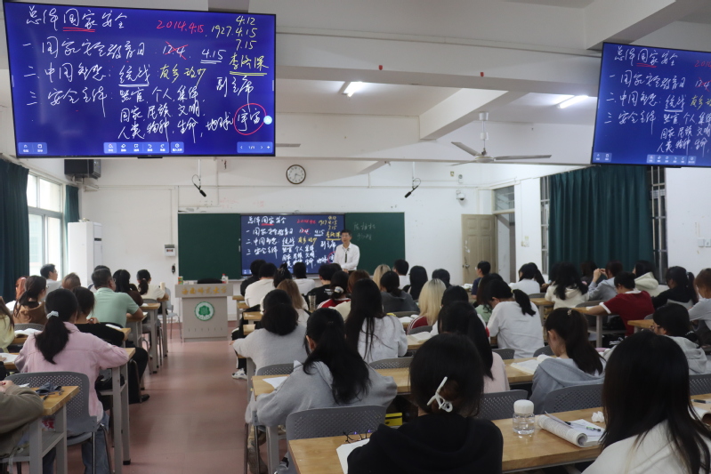 11月22日,校长陈相松走进思政课堂,为2023级小学教育专业中文与社会方向本科生讲授《习近平新时代中国特色社会主义思想概论》中的“总体国家安全观”专题课。