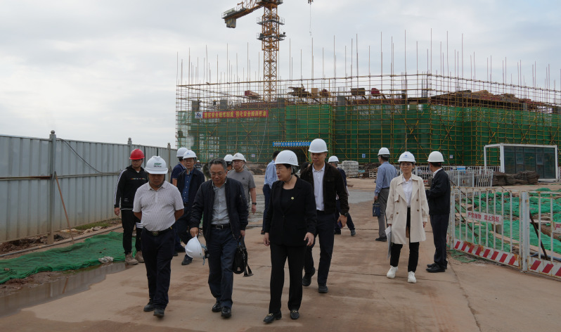 会前,陈小华一行实地走访了二期教学楼及综合楼等在建项目,深入了解项目概况、项目建设进展、安全生产等情况。