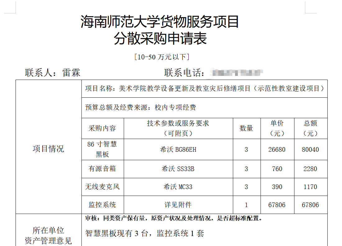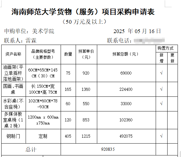 校内零星采购信息公开