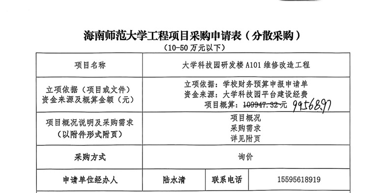 大学科技园研发楼A101维修改造工程