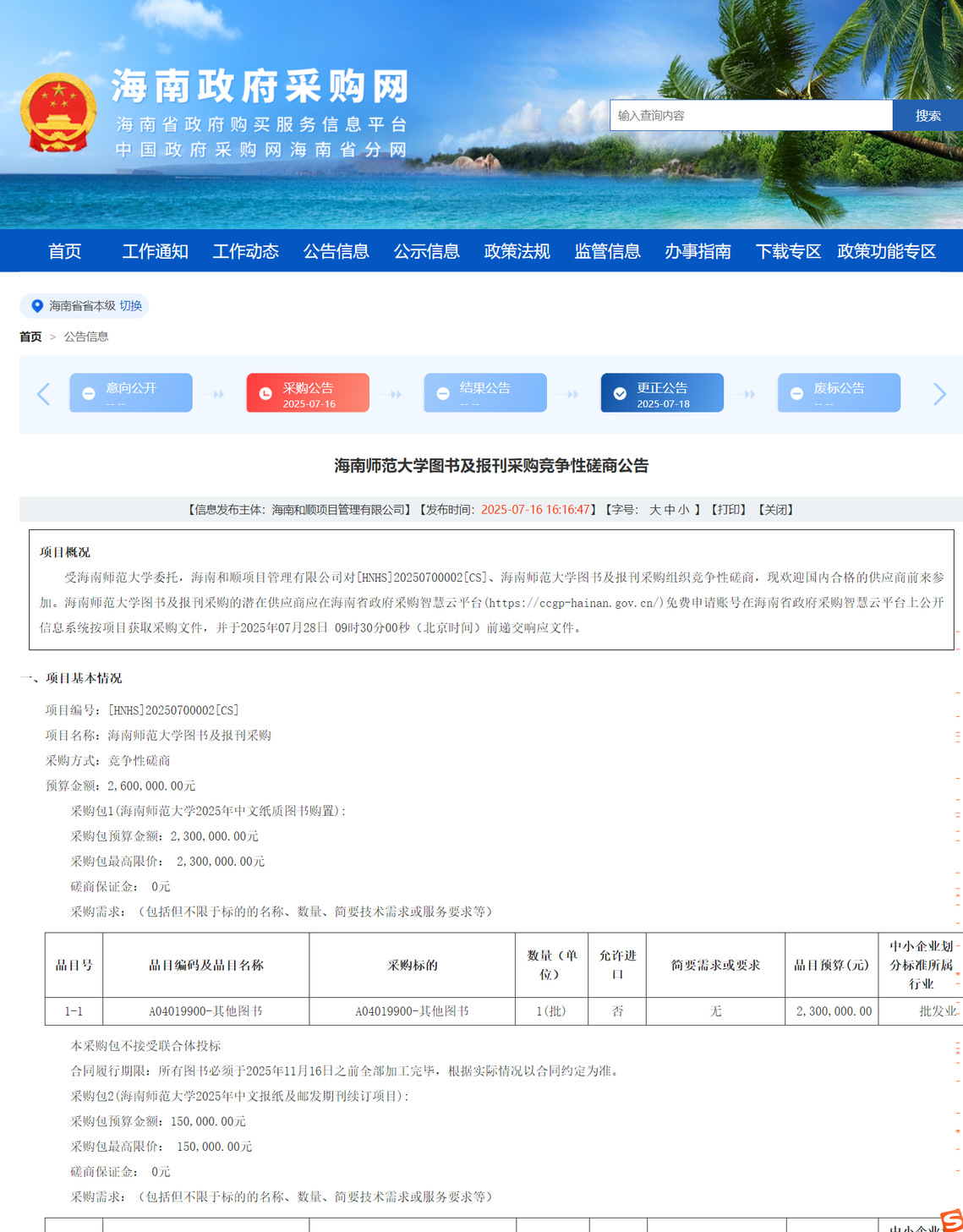 公告链接:https://ccgp-hainan.gov.cn/maincms-web/articleHn?type=notice&id=52cb3ca6-43c3-4dfd-b4fc-28bd7f64b4b2&planId=8a1d16dd97d83d960197e2a61c4f00db&channel=c5bff13f-21ca-4dac-b158-cb40accd3035