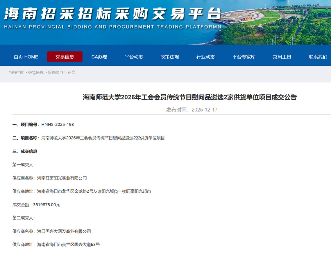 公告链接:http://www.hainanhpc.net/ggglm_xx.html?mid=CJ000002355