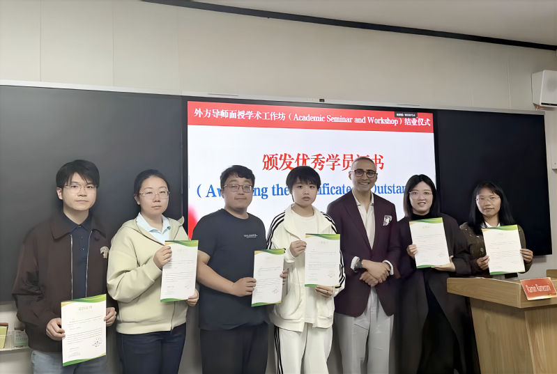 在1月31日结业仪式上,Roberto Rinaldi Sobrinho教授与Ramin Ramezani教授共同为学员颁发结业证书,并向表现突出的学员授予“优秀学员”称号,高度肯定了学员扎实的专业基础与积极的探索精神,并围绕学术研究方法、学科交叉融合等方面,对学员下一步研究提出前瞻性建议。