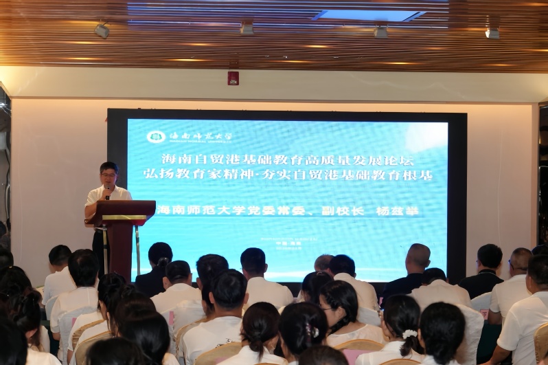 杨兹举表示,海南自贸港基础教育高质量发展论坛是我校深入贯彻党的二十届四中全会精神、落实省委省政府关于基础教育高质量发展部署的具体行动,更是我们践行教育家精神、夯实自贸港基础教育根基的生动实践。作为师范教育的排头兵,学校将坚守师范初心,以校地合作赋能区域教育高质量发展;勇担帮扶使命,以精准行动助力薄弱学校提升;弘扬教育家精神,以名家引领点亮教育梦想。