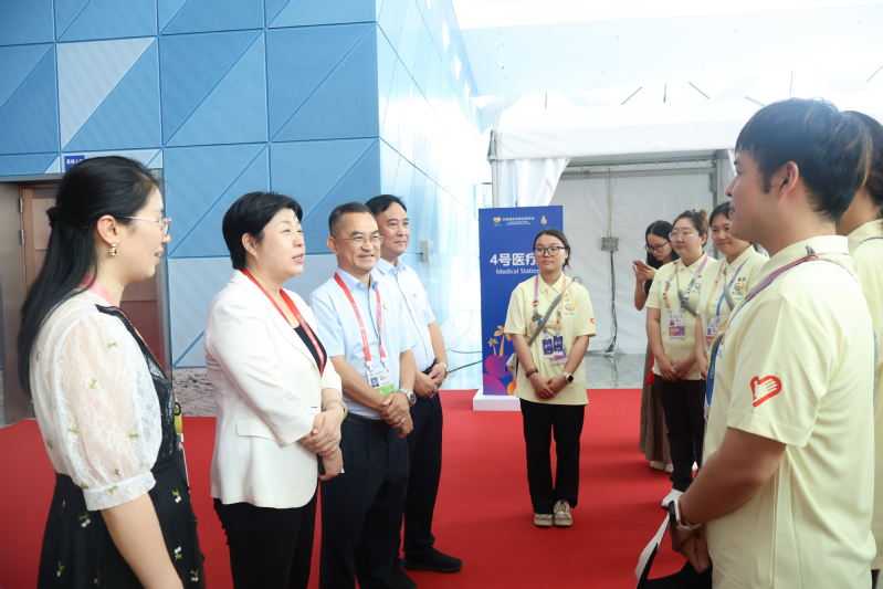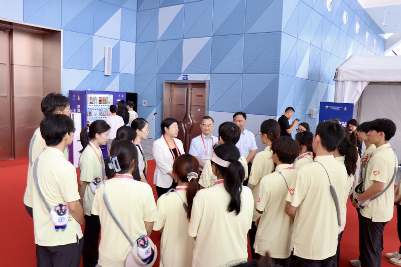 许玫代表学校向坚守岗位、辛勤服务的全体“小椰青”致以诚挚问候和衷心感谢,对大家以饱满热情投身服务,以严谨态度履职尽责的表现给予充分肯定,希望全体志愿者牢记初心使命,珍惜服务重大国际展会的宝贵历练机会,在实践中增长才干、锤炼品格。许玫叮嘱大家要严守工作纪律,规范服务流程,以专业素养和良好的精神风貌展现海师学子的责任担当,在圆满完成各项服务任务的同时,做好防暑降温、注意劳逸结合,保障自身健康安全。