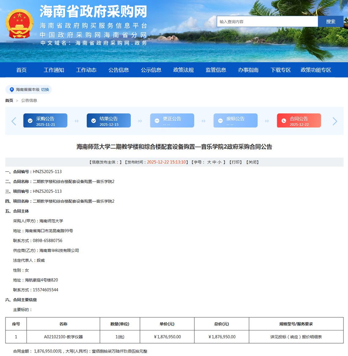 公告链接:https://ccgp-hainan.gov.cn/maincms-web/articleHn?type=notice&id=6ae04715-650c-49a3-b4b6-44d2c337de9b&planId=8a1d1a2b9a3a2355019a4f330aea0e5c