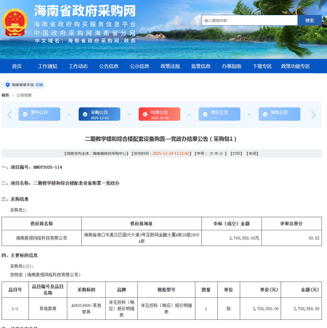 公告链接:https://ccgp-hainan.gov.cn/maincms-web/articleHn?type=notice&id=6cca73ac-2c13-4fb3-b19d-7bc73c971537&planId=8a1d1417996965f30199e16c904b534d&channel=c5bff13f-21ca-4dac-b158-cb40accd3035