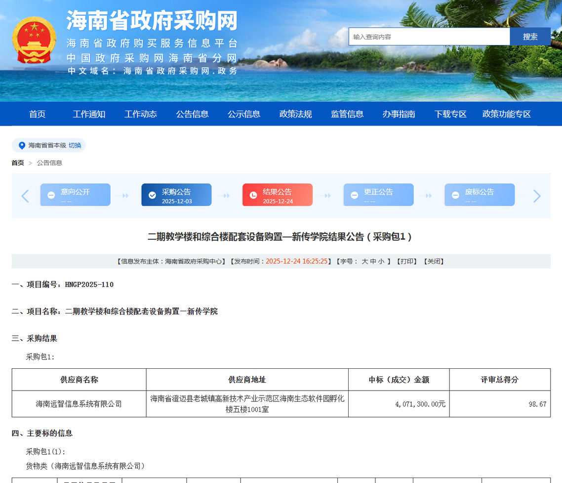 公告链接:https://ccgp-hainan.gov.cn/maincms-web/articleHn?type=notice&id=0e387ea0-a0bf-4089-ae48-36d0abe8ae32&planId=8a1d190a996966b90199d108bbb95c3e&channel=c5bff13f-21ca-4dac-b158-cb40accd3035