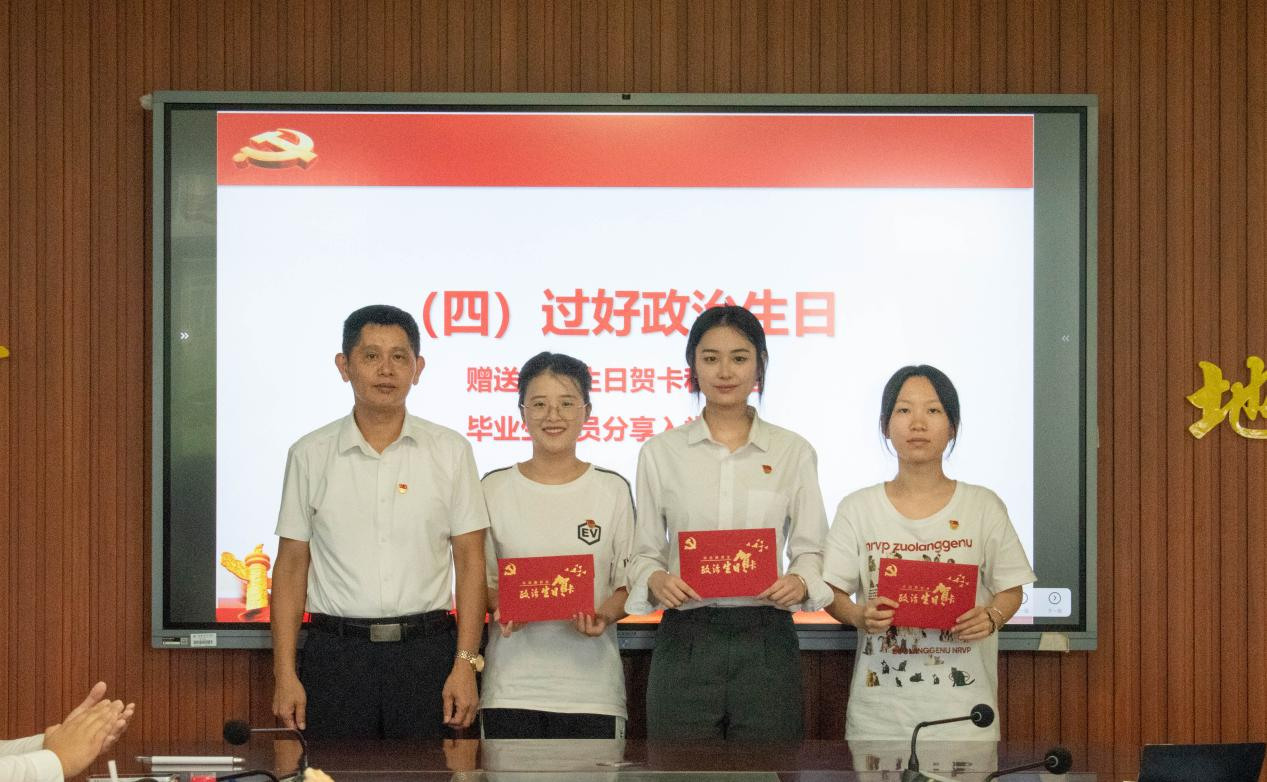 每名党员都有两个生日,一个是自然生日,昭示着“生命的开始”;一个是政治生日,代表着“入党的初心”。5月19日是贾丹丹、高冬辉和周鹭同学入党两周年的政治生日,黄武书记将这三位同学的名字融入进祝福语中,勉励各位党员,充分体现学院党委对全体2024届毕业生的殷殷期望和深切祝福,让党员感受党组织的关怀,始终牢记党员身份,在今后的学习、工作和生活中时刻以党员标准严格要求自己,切实发挥党员的先锋模范作用。随后三位过“政治生日”的同学进行主题发言,认真回顾入党经历,回忆入党初心,以及在党组织的培养和指导下不断学习成长的奋斗故事。