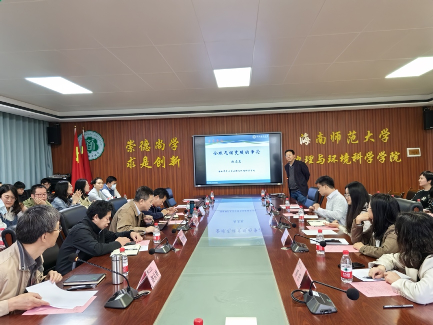 年会由赵志忠院长致开幕词。他强调学院以一级学科地理学(硕士点,四个二级学科)、资源与环境(硕士点)、地理学海南省重点学科和海南省热带海岛地表过程与环境变化重点实验室为核心,根植热带海岛独特的地理环境,聚焦热带海岛地理过程、人地关系、资源环境遥感等,新的研究成果、创新理念持续涌现。