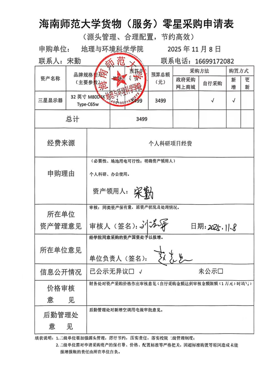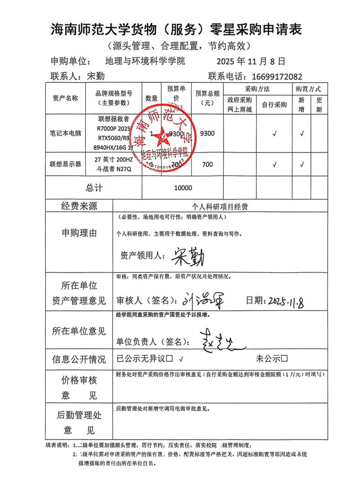 星空游戏官方地理与环境科学学院宋勤老师设备采购公示