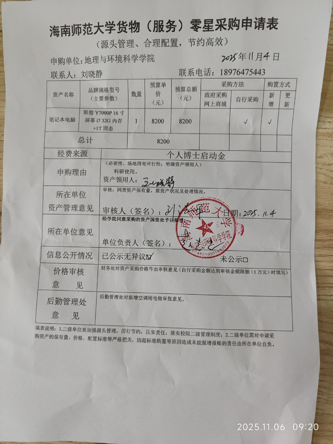 星空游戏官方地理与环境科学学院刘晓静老师设备采购公示