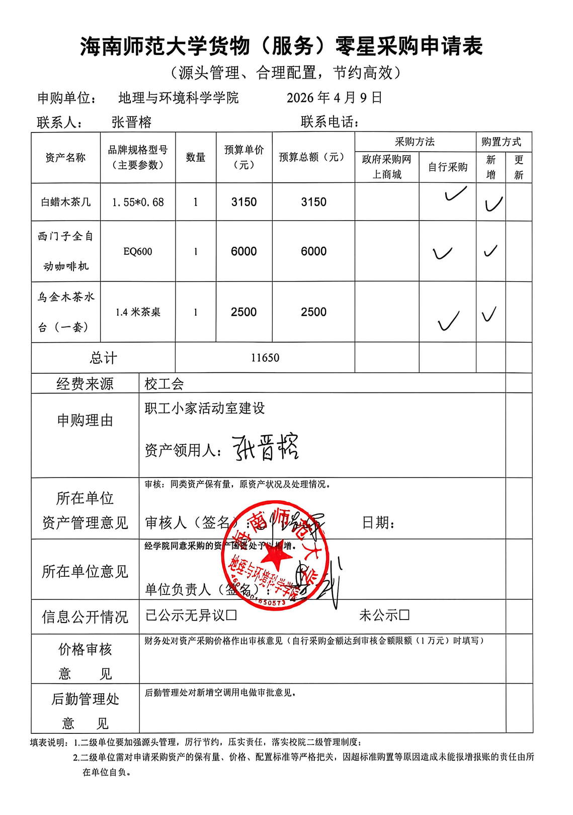 星空游戏官方地理与环境科学学院“职工之家“家具采购公示