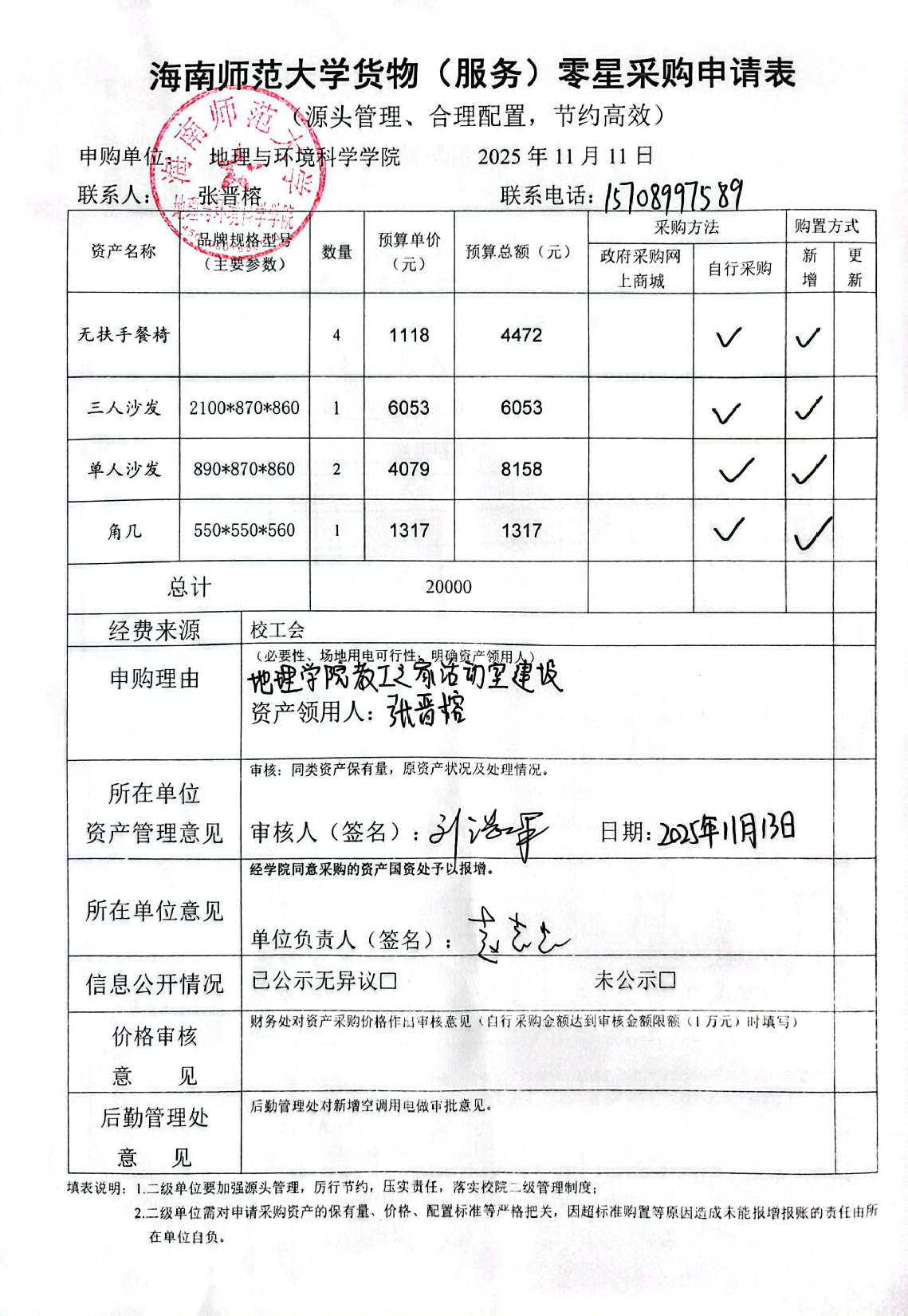 星空游戏官方地理与环境科学学院“教工之家“家具采购公示一