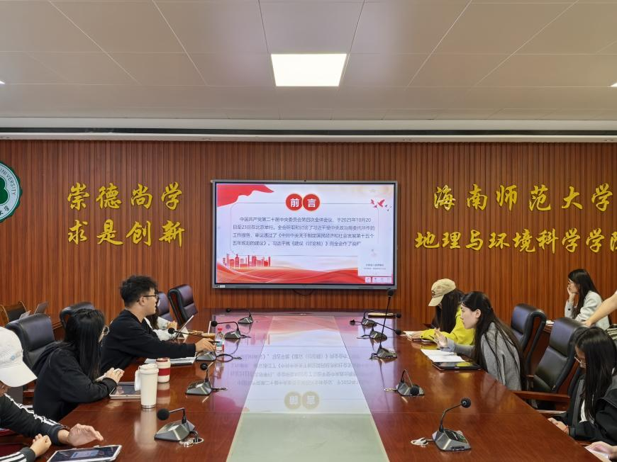 为深入学习贯彻党的二十届四中全会精神,强化支部党员的政治理论素养与责任担当,切实把支部党员思想和行动统一到党中央决策部署上来,2025年12月2日,地理与环境科学学院学生党支部于地理楼会议室开展二十届四中全会精神专题学习会,本次活动由学生党支部书记王宇翔老师领学,全体学生党员参加。