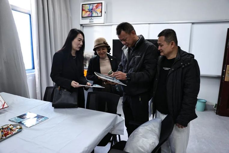 最后,刘亚明一行来到何素丹工匠人才创新工作室指导工作,对何老师创新工作室所取得的成绩给予了高度的肯定与赞扬。