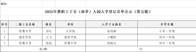 附件:1.2025年教职工子女(孙辈)入园入学登记名单公示(第五批)