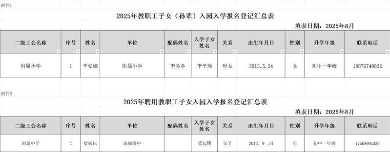 根据《关于做好2025年教职工子女(孙辈)入园入学登记工作的通知》(海师工字〔2025〕9号)文件精神,相关部门对教职工子女入学申请资格进行了审核,第八批登记名单现予以公示。