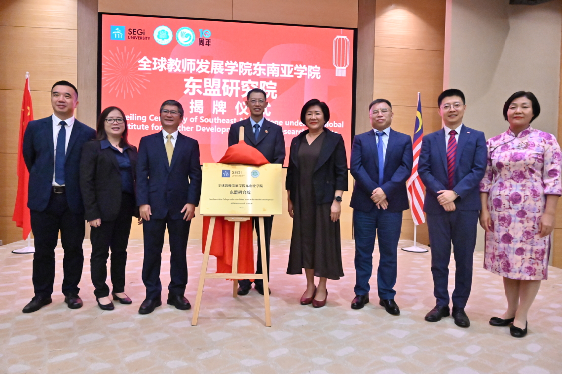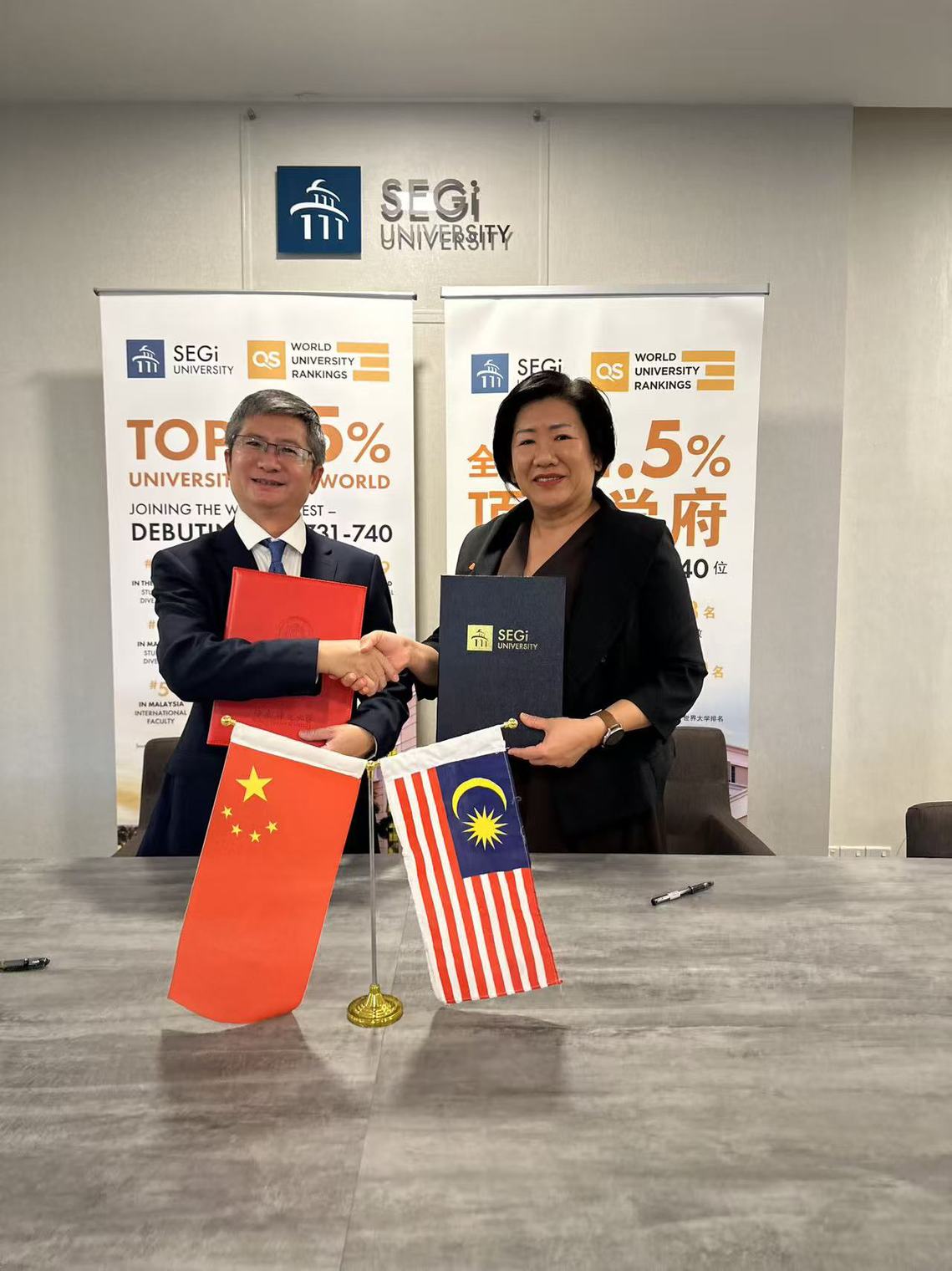 9月24日,星空游戏官方全球教师发展学院东南亚学院东盟研究院签约揭牌仪式在马来西亚世纪大学举行。马来西亚世纪大学校长郑玉美院士、我校副校长杨兹举出席仪式并致辞。