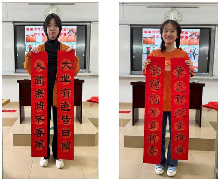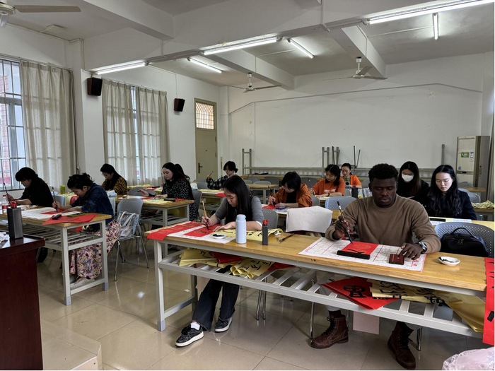 2024年12月31日,20名“中外大学生共同研习书法,传承、传播中华优秀传统文化”研习班学员一起挥毫,为中国新年写春联、写福字,为元旦游园活动增添了艺术色彩,带来了饱含中国传统气息的祝福。