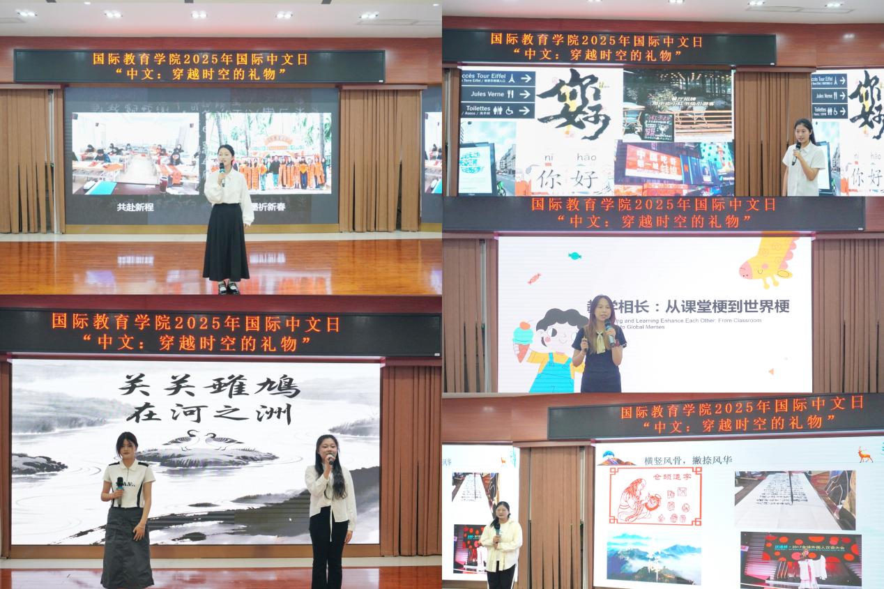 为了庆祝国际中文日的到来,弘扬中文魅力,推动中外学子相互交流,我院于4月20日下午在文科楼201报告厅开展了“中文:穿越时空的礼物”2025年国际中文日系列活动。学院党委书记吴辰、副院长张恒、牟鸿月与百余名师生齐聚一堂,共同感受中文之美。