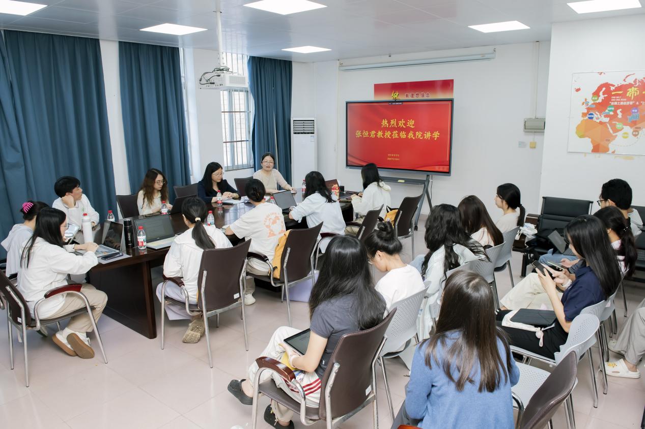 5月26日,我院在学院会议室举办第十三期研究生学术沙龙。为进一步深化国际中文教育专业研究生对案例开发与应用的实践认知,提升教学研究与创新能力,我院特邀河南师范大学文学院教授张恒君作为主讲嘉宾,从前期积累、核心内容、具体实施过程到推广应用与赛事筹谋四个方面,系统分享了案例开发的理论框架与实践经验。本次活动由国际教育学院研究生会承办,我院部分青年教师及国际中文教育专业中外硕士研究生30余人参加。