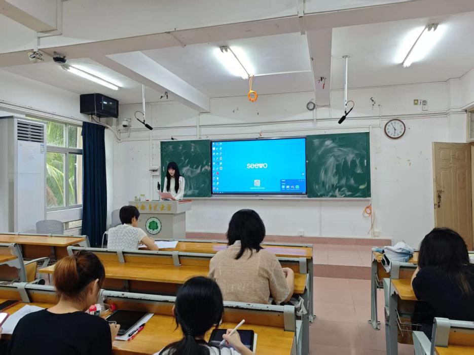 图5:嘉勋中学李日香老师在实习生见面会做师德师风主题讲座
