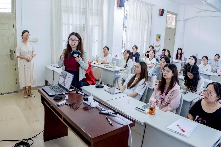 宋继华教授以“数字化国际中文教育体系的融合认知”为主题,系统阐述了数字化背景下国际中文教育面临的新形势与新挑战。随后,他对“数字化国际中文教育”的概念作出了清晰界定,并重点围绕“融合认知”展开讲解,强调技术与教育深度融合的必要性与现实路径。在讲解过程中,宋教授结合多个“典型案例”,生动展示了数字化手段在国际中文教育中的实际应用与成效。此外,宋教授对数字化趋势下国际中文教师的专业能力培养进行了展望,引发了在场同学的深入思考。