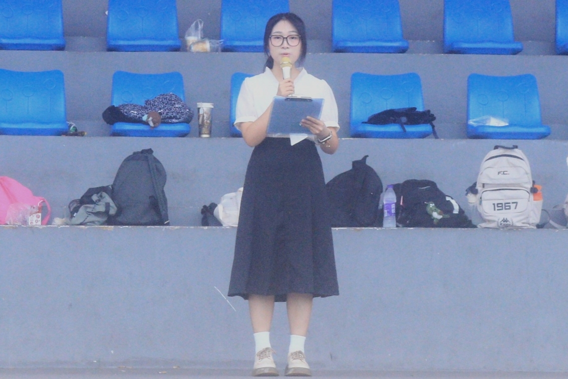 随后,2023级汉语国际教育二班学生代表林倩如围绕“理想的厚度、学问的深度、视野的广度”发言,倡议同学们坚定理想信念,深耕专业学识,拓展全球视野,勇担新时代赋予青年的历史使命。