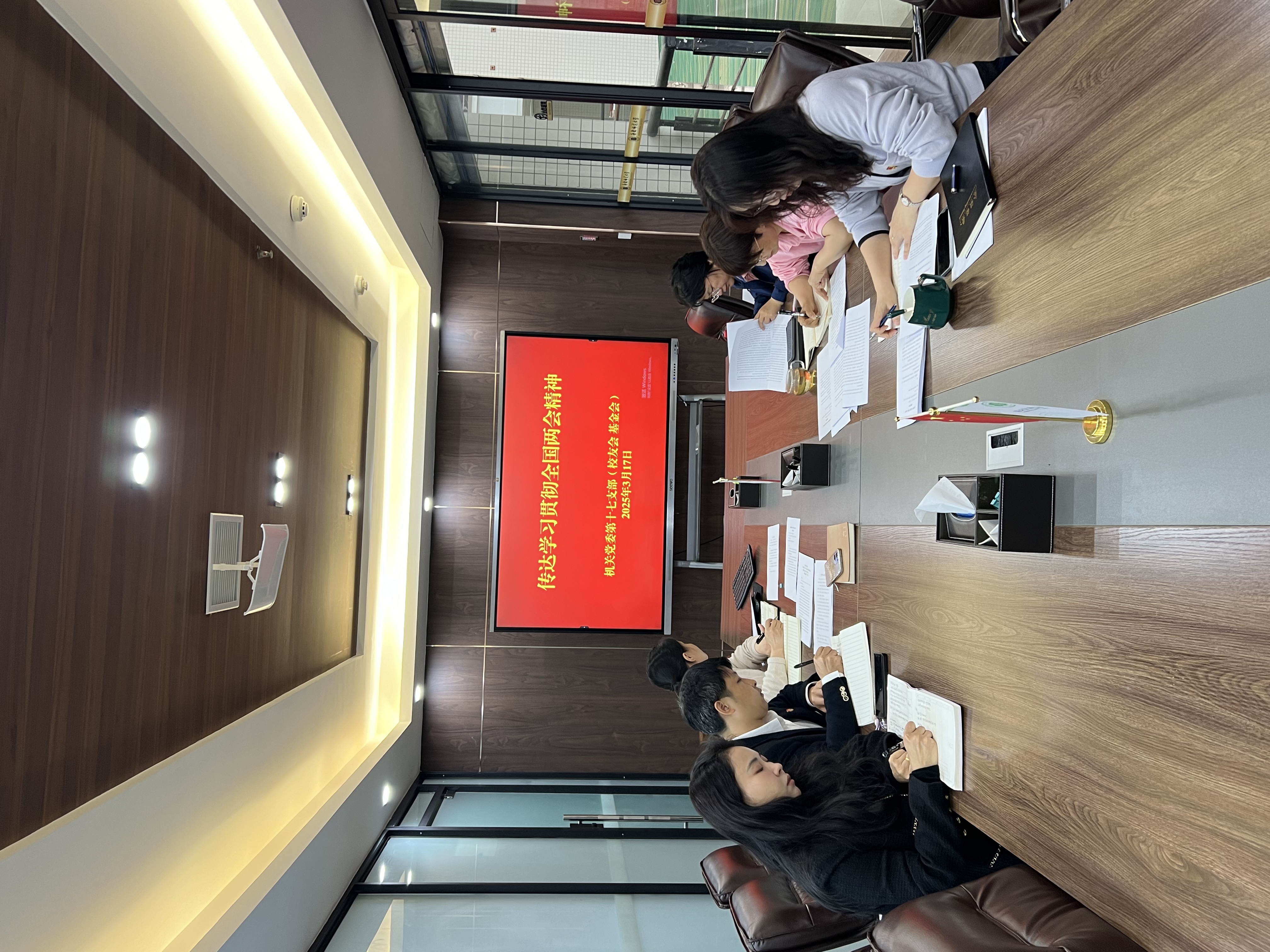 2025年3月17日上午,我支部在龙昆南校区图书馆二楼校友之家会议室传达学习贯彻全国两会精神,会议由党支部书记刘杼主持,支部全体党员、非党员都参加了此次学习。