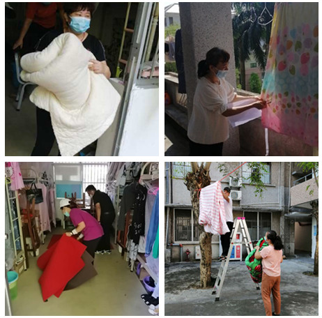 经过两天的精心准备工作,5月3日天气晴好,阳光灿烂,后勤管理处180余名工作人员,在龙昆南校区、桂林洋校区、金鹏学生公寓同时开始晒被子服务活动,开门、写床号;擦拭寝室阳台栏杆和晾衣杆;抱被子、贴上便签、登记表格…