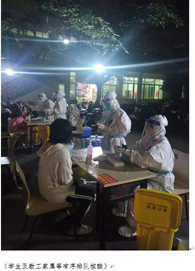 4月5日下午,接到学校通知后,后勤工作人员迅速行动起来,在黄华康体育馆、数理楼前和金鹏学生公寓组织龙昆南校区在校学生、教职工及家属开展了核酸检测。后勤黄文忠科长全程现场检查了核酸检测采样点的设置、体温检测、信息采集、核酸采样、人员防护、标本转运等关键环节,校园管理科许振雨、水电科文传成、学生宿舍管理科房武新积极配合场地布置、供电线路安装,并叮嘱工作人员务必规范检测流程,做到万无一失。