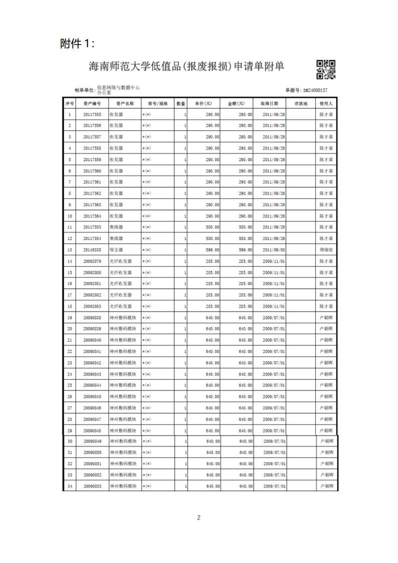 根据学校要求,资产报废为信息公开的重要内容之一,现将2025年3月拟报废低值类资产一批共34件(见附件1)、仪器设备类固定资产一批共31件(见附件2)进行公示。