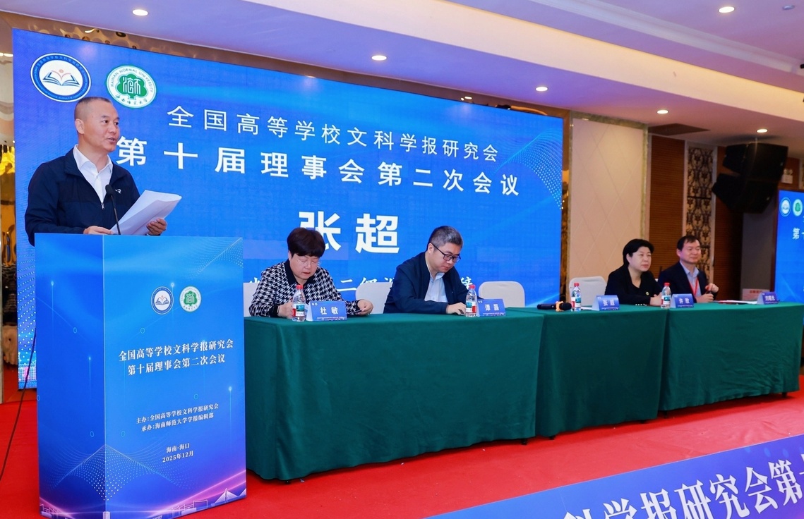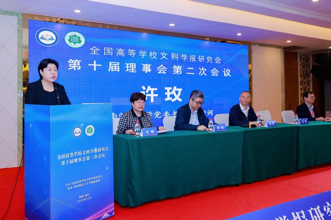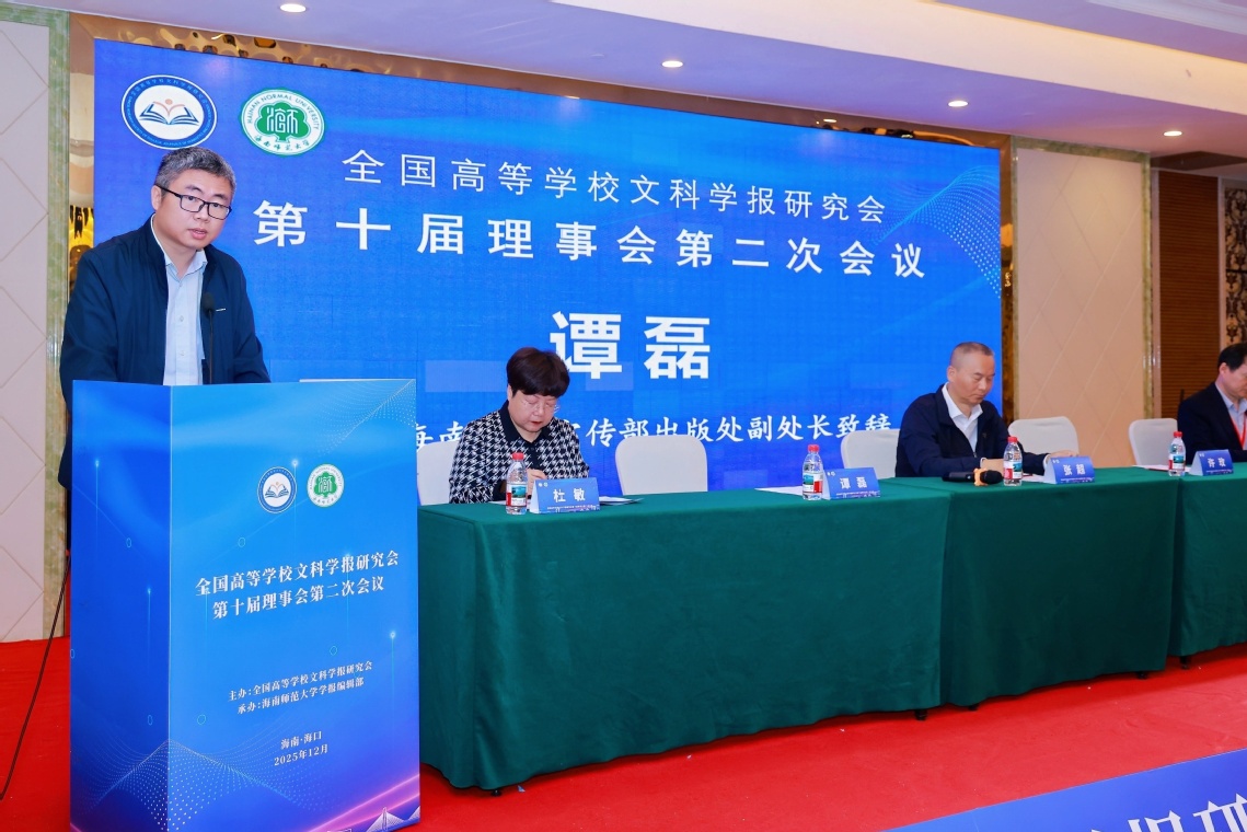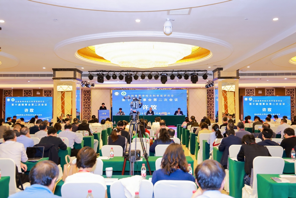 12月20日,全国高等学校文科学报研究会第十届理事会第二次会议在海口召开。本次会议以“学术期刊发展与中国自主知识体系建构”为主题,校党委书记许玫、省教育厅二级巡视员张超、省委宣传部出版处副处长谭磊、全国高等学校文科学报研究会理事长刘曙光出席开幕式并致辞。开幕式由全国高等学校文科学报研究会秘书长杜敏主持。