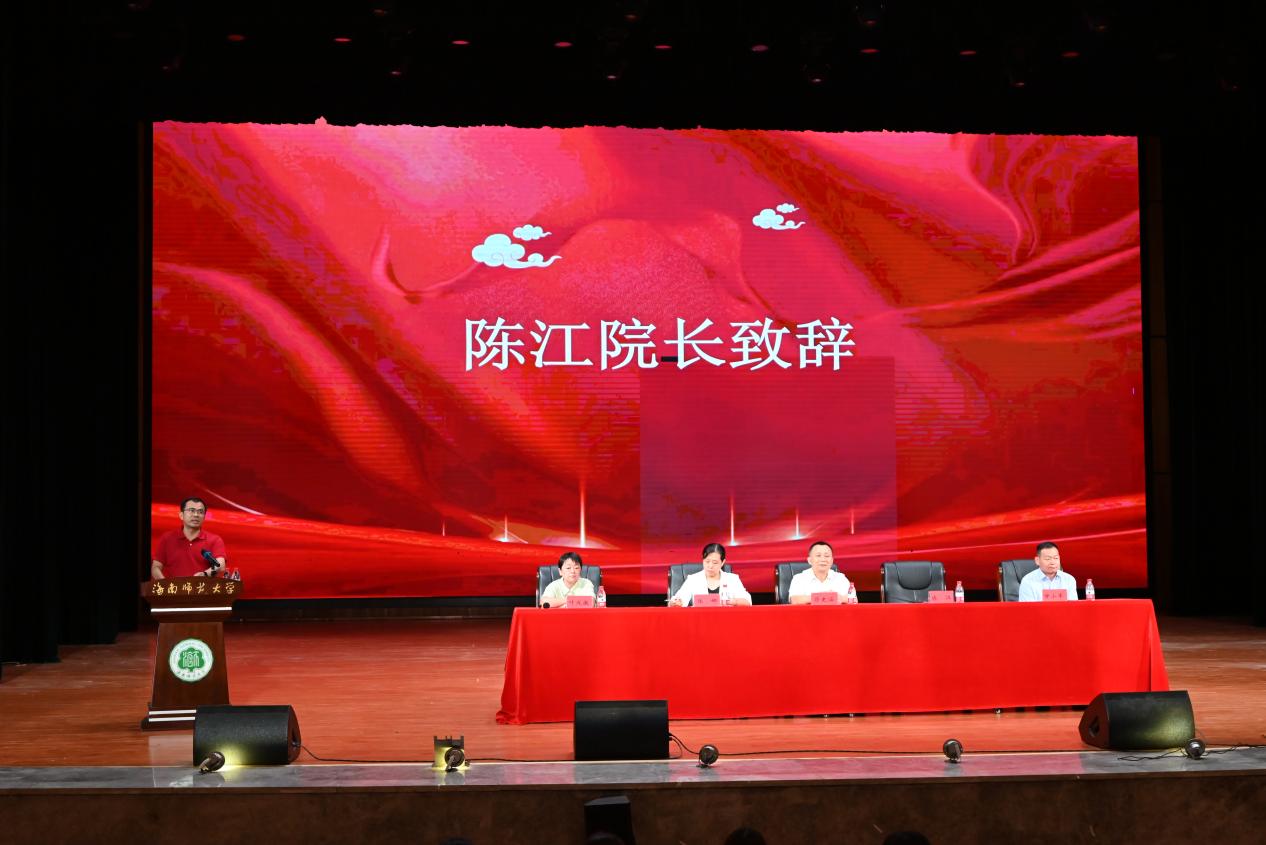 陈江向新生致辞,他首先代表学院全体教职工向全体新生致以热烈的欢迎,随后,向新生介绍了学院的发展历程、办学成就以及未来规划,号召新生们牢牢把握大学的宝贵时光,以勇于探索的闯劲、积极进取的干劲深耕自我成长,主动把个人发展融入海南自贸港建设的实践浪潮,与国家长远发展的大局同频共振。