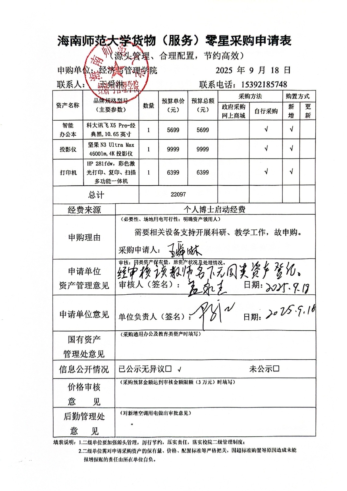 购买个人科研用办公设备公示