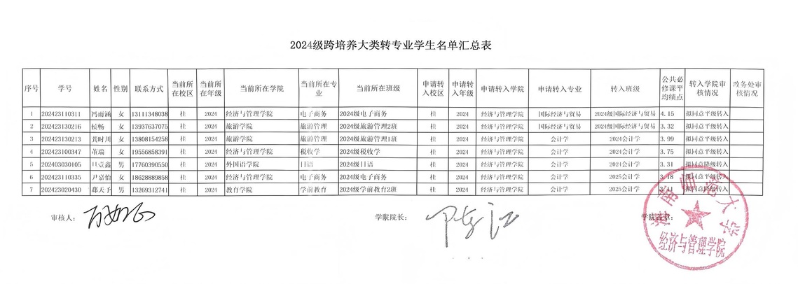 依据《星空游戏官方本科专业人才培养方案管理及实施办法》等三个管理制度的通知(海师办(2025)25 号)中《星空游戏官方本科生转专业管理办法》、《关于做好 2025-2026 学年第一学期学生转专业工作的通知》(海师教函〔2025〕88 号)文件要求,现对学院拟录取名单予以公示: