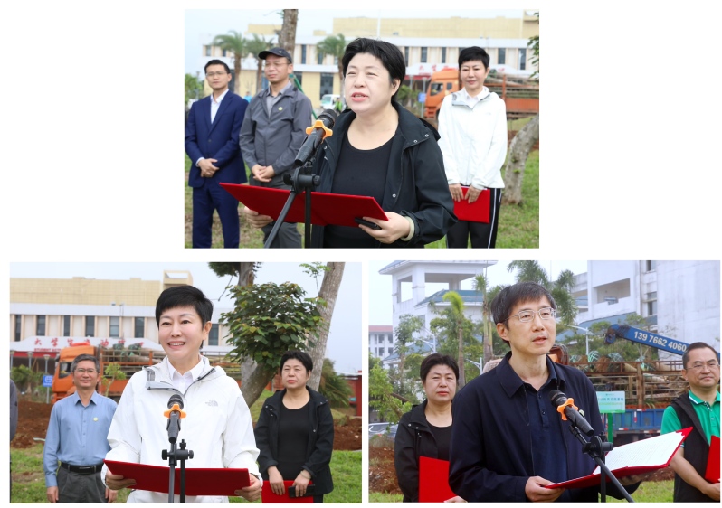 校党委书记许玫在致辞中对支持我校植树活动的海南省林业局、交通银行海南省分行,我校离退休教职工和校友表示感谢。她指出,此次活动既是我们深入贯彻落实习近平生态文明思想,奋力书写建设美丽中国绿色答卷的生动实践,也是培养师生劳动精神和奉献精神,建设美丽海师,争创一流师范大学的重要举措。全体师生要主动发挥“生力军”作用,积极履行义务植树责任,争做扩绿兴绿护绿的传播者、实践者、守护者,为建设环境优美、师生幸福的海师贡献力量。