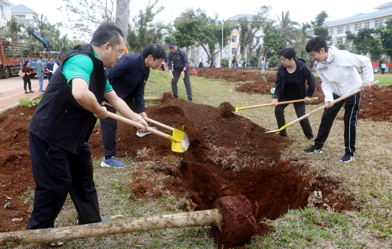 3月12日上午,在第47个植树节到来之际,我校在桂林洋校区举办“梦想扎根沃土 植树焕新校园”植树节活动。校党政领导班子成员许玫、陈相松、符刘才、杨兹举、刘汝兵、徐基良、王任斌、黄忆军,交通银行海南省分行党委委员、副行长李爽,交通银行海口国兴支行行长黄在亮出席活动启动仪式。仪式由校党委副书记符刘才主持。