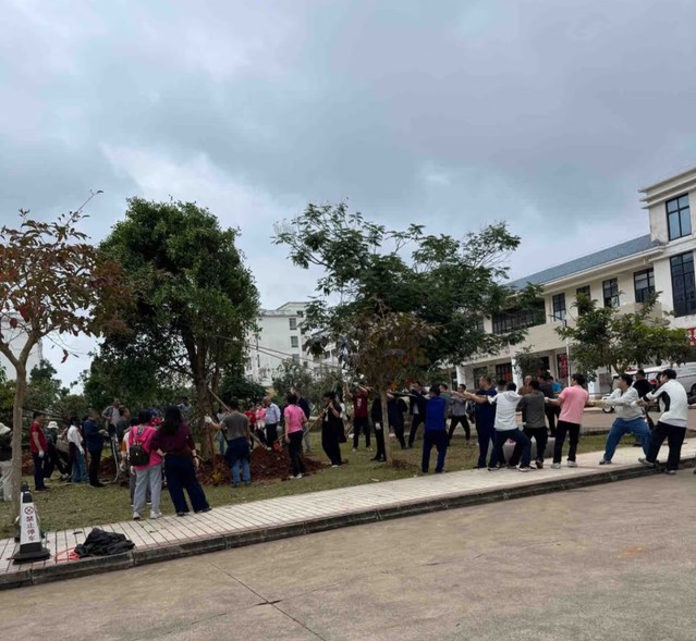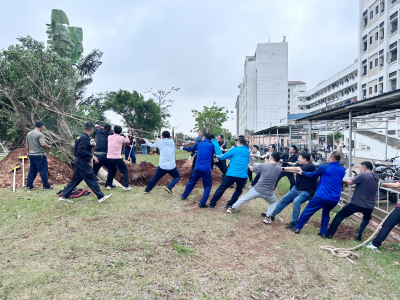 在机关党委的领导下,机关第九党支部与其他支部在桂林洋校区第二食堂与十一栋学生宿舍之间开展植树活动。各支部在没有机械设备的情况下,不等不靠,积极主动,想办法,找工具,团结一致,顺利完成植树活动。