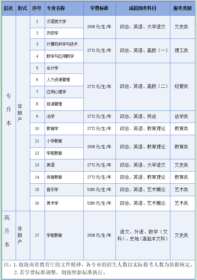 成人高等教育招生专业一览表
