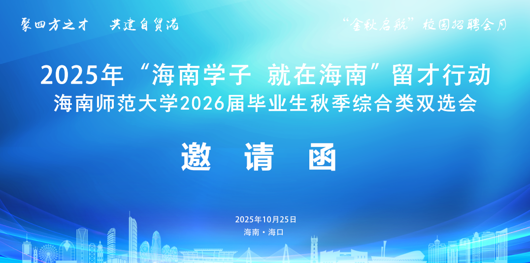 感谢贵单位多年来对我校毕业生就业工作的大力支持与关心! 为贯彻落实党的二十大精神,深入推进海南省委、省政府“聚四方之才 共建自贸港”招才引智进校园工作,抢抓高校毕业生就业关键期,学校将于10月25日(星期六)举办星空游戏官方2026届毕业生秋季综合类双选会,诚挚邀请各用人单位参加。现将具体事宜通知如下:
