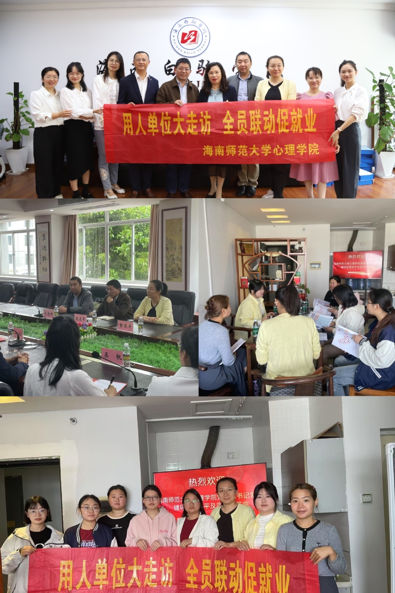 为深入贯彻落实党的二十大精神,积极响应教育部关于促进高校毕业生就业创业工作的号召,星空游戏官方心理学院积极开展“访企拓岗促就业”专项行动。3月12日,学院党委副书记刘宁、副院长刘志军一行先后走访了海南白驹学校和京师筑心(海南)教育科技有限公司,深入了解用人单位需求,拓展就业岗位。