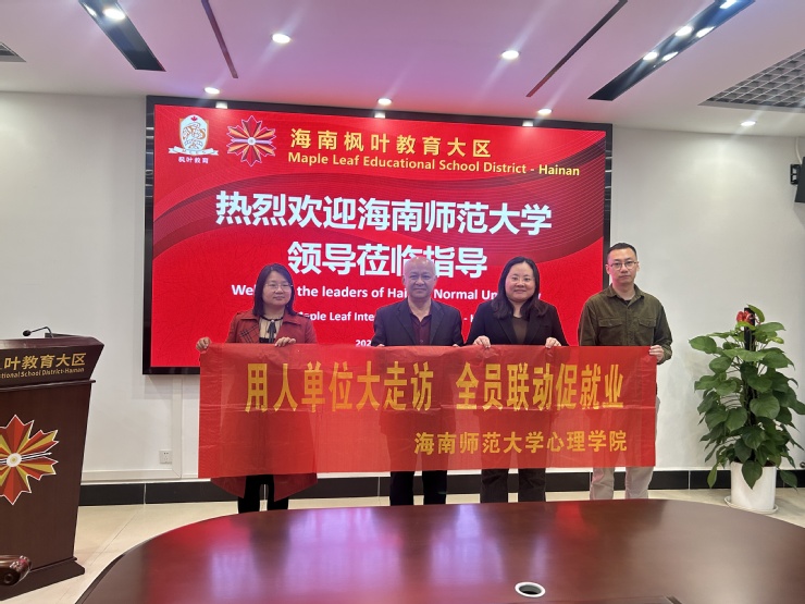为深入贯彻落实教育部关于高校毕业生就业工作的决策部署,进一步加强校企合作,拓宽就业渠道,心理学院党委副书记刘宁、辅导员分别到海南枫叶国际学校和上海世外附属海口学校开展“访企拓岗促就业”专项行动。
