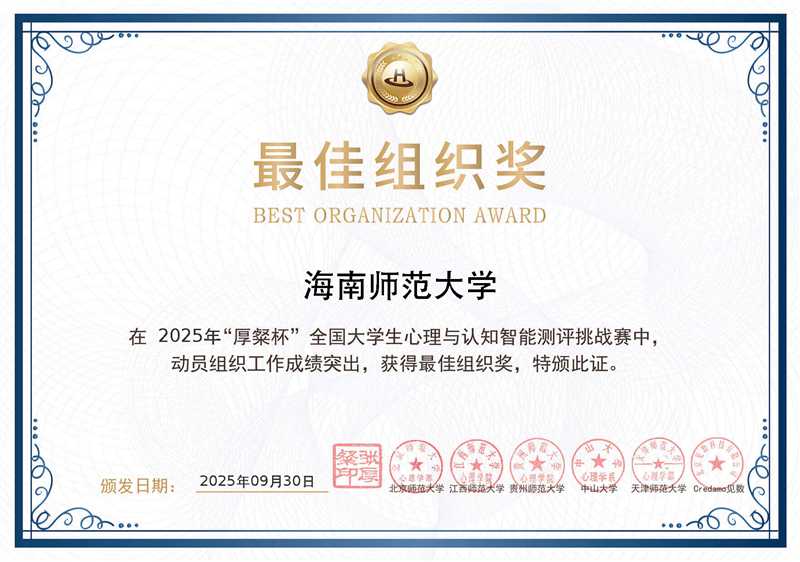 我院在首届“厚粲杯”全国大学生心理与认知智能测评挑战赛中荣获多项奖项