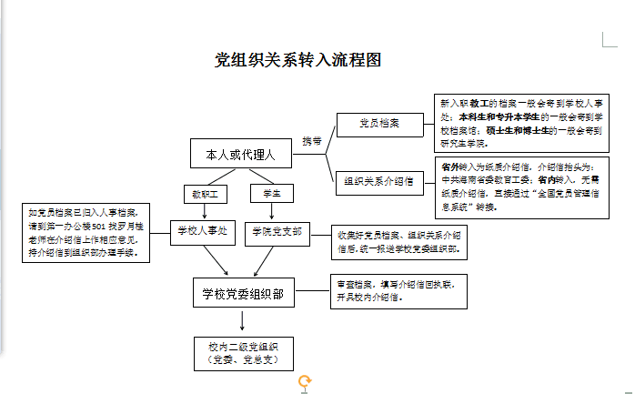 1. 办理手续后,省外转入的要将组织关系介绍信回执联寄回原所在党组织。同时,领取一张校内介绍信作为凭证,到现所在单位(部门)党委、党总支报到;