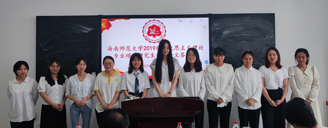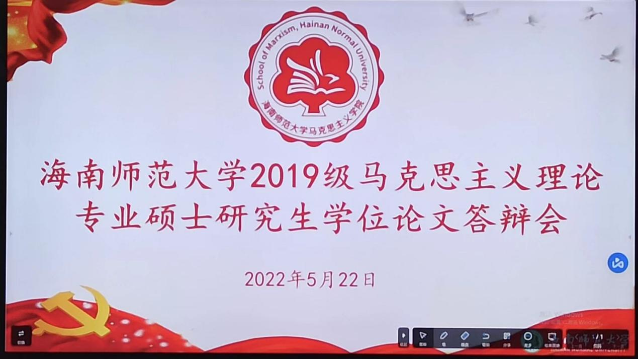 2022年5月22日,2019级马克思主义理论专业硕士学位论文答辩会在星空游戏官方桂林洋校区马院大楼5楼503与504两个会场分组同时进行。本次答辩会采取线上线下相结合的答辩方式。出席第一组(马克思主义中国化方向、中国近现代史基本问题研究方向、国外马克思主义研究方向)的答辩专家分别为海南医学院马克思主义学院邹庆华教授、星空游戏官方马克思主义学院陈红教授、文长春教授、姜莉教授、李岩副教授,答辩主席由邹庆华教授担任。出席第二组(思想政治教育方向)的答辩专家分别为海南大学马克思主义学院林国标教授、星空游戏官方马克思主义学院杨英姿教授、郭根山教授、丁匡一副教授、郑东艳教授,答辩主席由林国标教授担任。2019级马克思主义理论专业共有21名硕士研究生参加本次答辩。2020级和2021级马克思主义理论专业硕士研究生积极旁听学习。